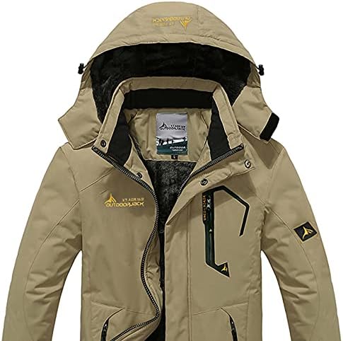 Mens Waterproof Coat Ski Jacket Windproof Windbreaker Hooded Snowboarding Jackets Fleece Winter Coat with Multi Zip Pockets
